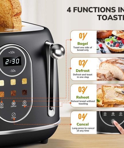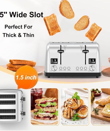 Toaster 4 Slice,Ultra-Clear Led Display, Dual Control Panels With Independent Settings