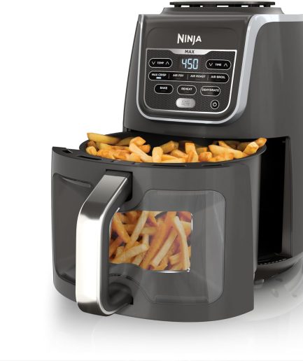 FOOD FINISHES TOGETHER: Convenient Sync Finish allows individual 3-quart large capacity air fryer double baskets to finish cooking at the same time.