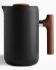 The matte black exterior with walnut accents creates a sleek, contemporary look that complements any kitchen or coffee station. Its sculptural presence makes it an aesthetic addition to your home.